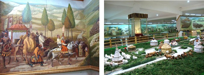 隨后我們進入了成陵中最壯觀的蒙古歷史文化博物館,參觀長達206米的《蒙古歷史長卷》油畫是世界上最長的油畫和各種蒙古用品模型。